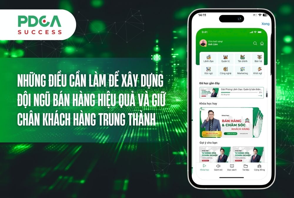 Khóa học “Bán Hàng và Chăm Sóc Khách Hàng” của chuyên gia Đặng Văn Tân, hiện có trên ứng dụng PDCA Success, được xây dựng để giải quyết những vấn đề cốt lõi này. Đây là chương trình đào tạo thực chiến, giúp đội ngũ bán hàng – chăm sóc khách hàng nắm được kỹ năng chuẩn, quy trình chuẩn và tư duy chuẩn để tạo nên hiệu quả khác biệt.