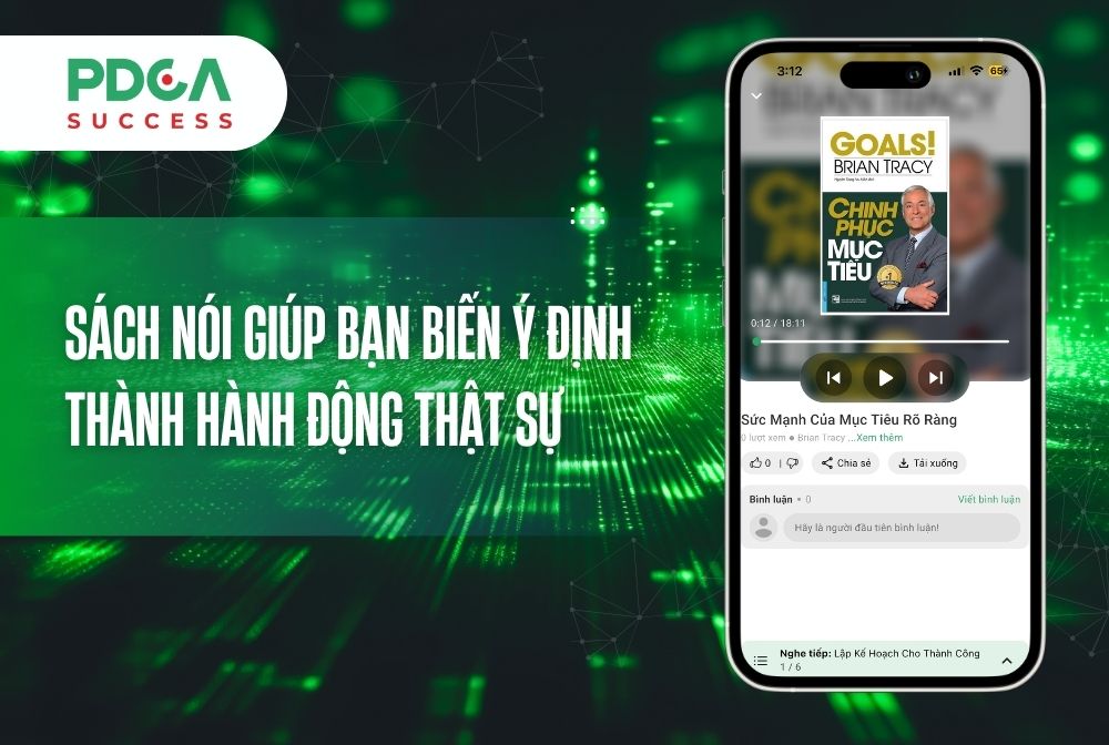 Hãy mở ứng dụng PDCA Success → vào mục Sách nói → nghe ngay “Chinh phục mục tiêu”.